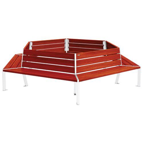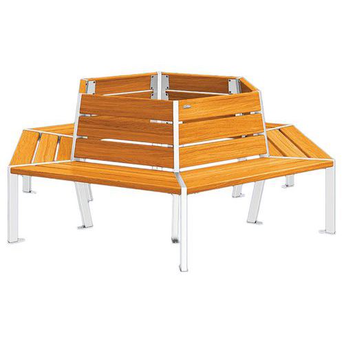 - Banc tour d’arbre Silaos hexagonal avec structure en acier.