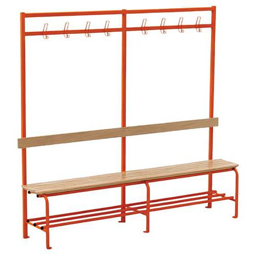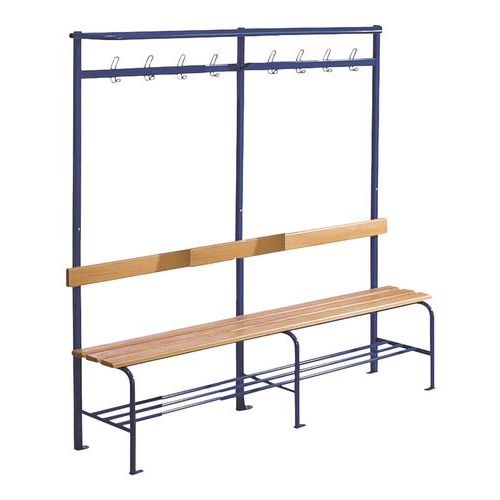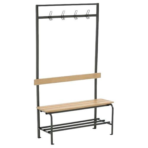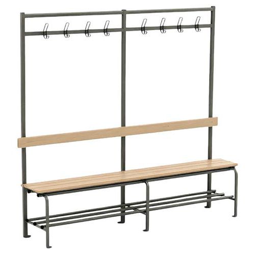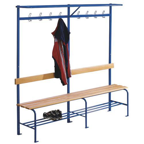 Banc vestiaire lattes bois 1 ou 2 m 4 à 8 patères avec grille chaussures à l'unité