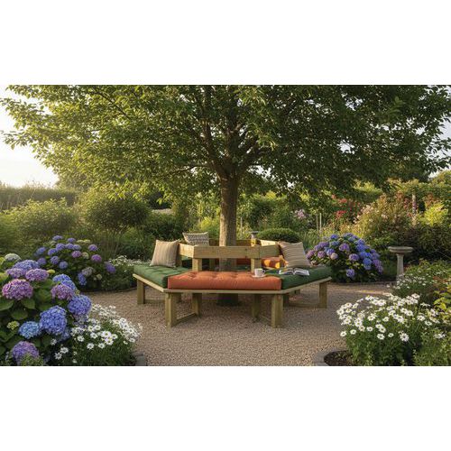 - Banquette tour d'arbre robuste, adaptée aux environnements extérieurs.