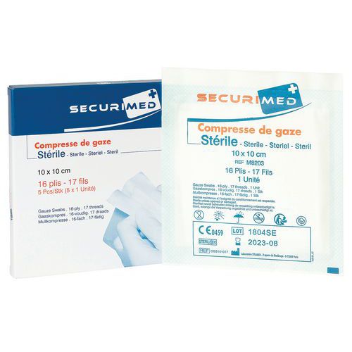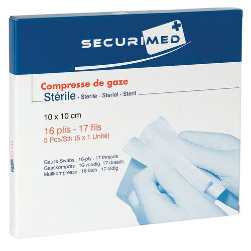 5 boîtes de 5 compresses de gaze stérile, 5x5cm-Securimed, Nb de pièces: 25, Longueurs: 10 cm