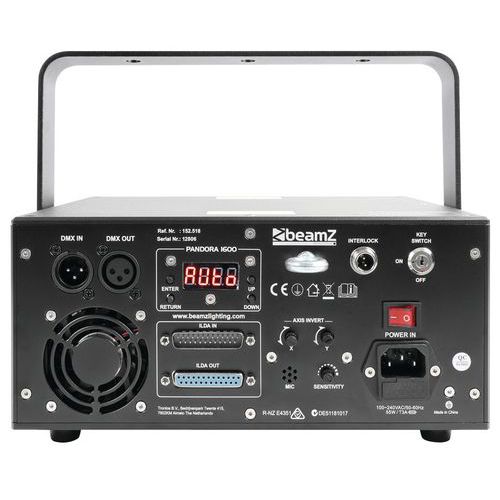 Il peut être géré par ILDA et DMX ou en Stand-alone en mode Auto ou géré par la musique.
