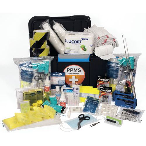 | Intitulé du produit | Mallette de secours confinement PPMS 150 personnes avec talkie walkie-Securimed, Modèle: 150 personnes |