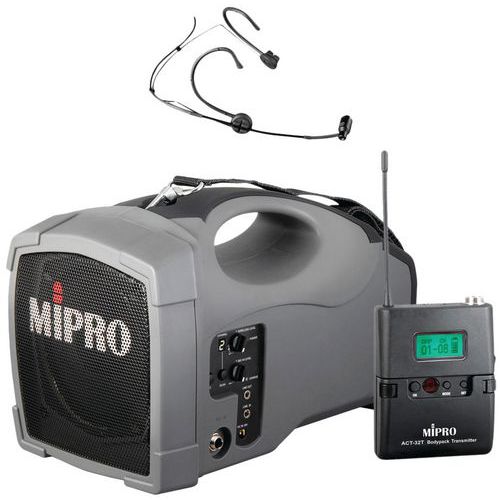 Pack sono portable MA101B récepteur UHF micro serre tête unidirectionnel MIPRO, Télécommande: non