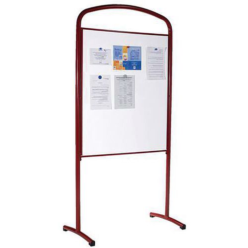Panneau d'affichage sur pieds Tube rond cintré Ø 40 mm Au choix 2 faces fond liège aggloméré uni ou 2 faces tôle laquée blanc Au choix avec ou sans roulettes à clipser Proposés en 2 modèles : 2 faces liège aggloméré uni ou 2 faces tôle laquée blanc. En option, 4 roulettes avec frein. Dimensions utiles : 89 x 105 cm. Poids : panneau liège (17 kg) et panneau tôle (20 kg). Livré monté (sauf roulettes à clipser). L/H/P hors tout : 100 x 200 x 54 cm.