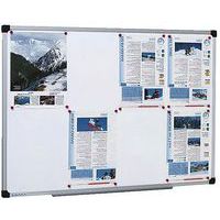 2 modèles au choix, émaillé blanc ou liège, et 4 dimensions. Fond tôle, affichage magnétique ou écriture au feutre effaçable à sec. Fond liège, affichage à l'aide de punaises ou d'épingles (liège ép.1 mm). Liège aggloméré sur support en fibres de bois basse densité ép. 8 mm. Profilé en aluminium anodisé. Livrés montés.