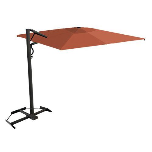 Le mât tourne à 360° sur son socle, ce qui permet d'orienter à votre guise le parasol (même ouvert).