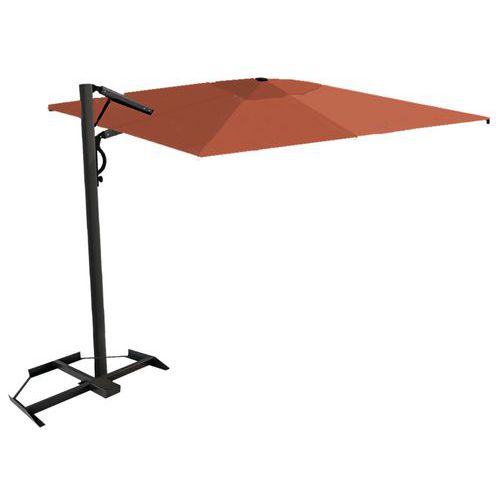 Le mât tourne à 360° sur son socle, ce qui permet d'orienter à votre guise le parasol (même ouvert).