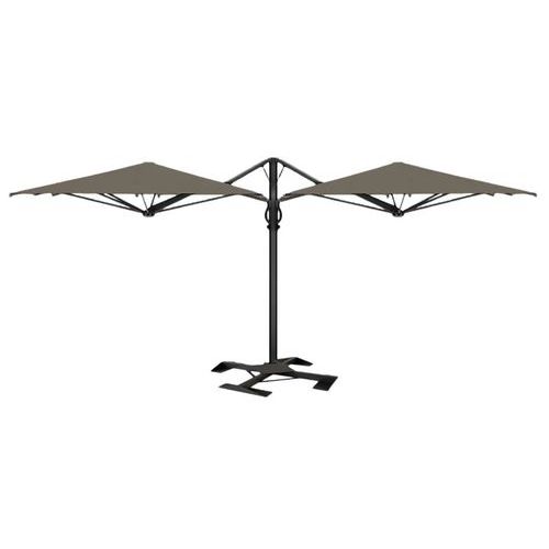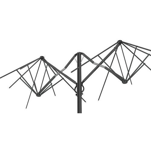 Composé de 2 parasols de 3,5x3,5 m, accrochés sur un seul mât de 110x110 cm.