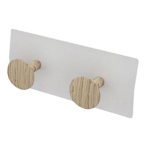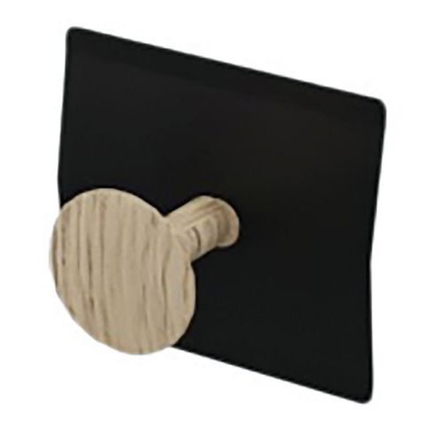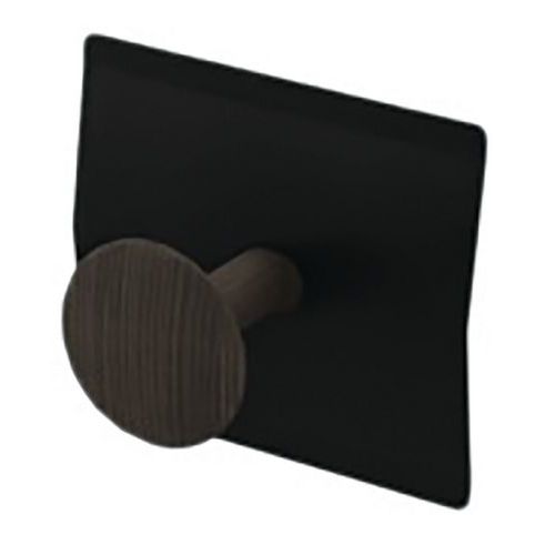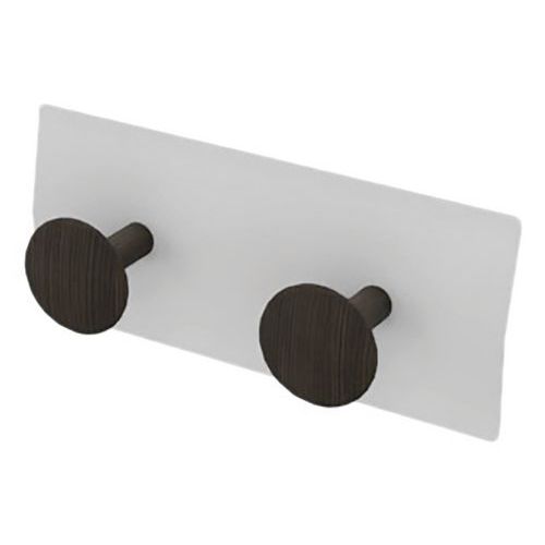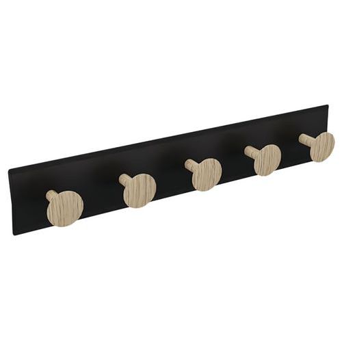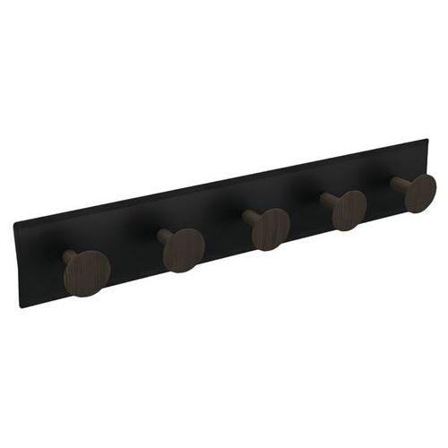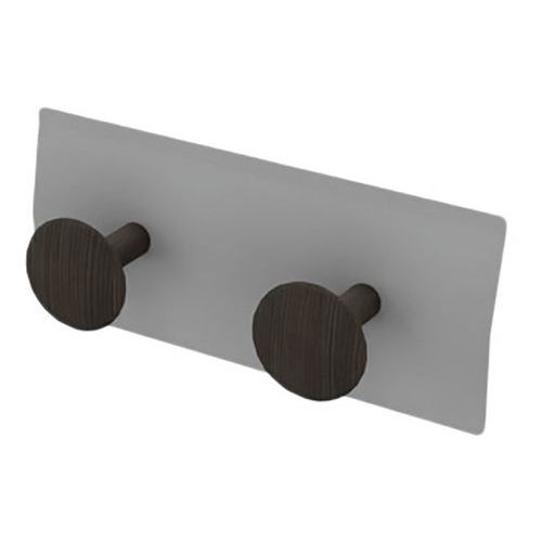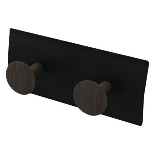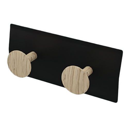 - Platine en acier peint époxy, patères Ø 60 mm en bois naturel brut verni ou teinté wengé