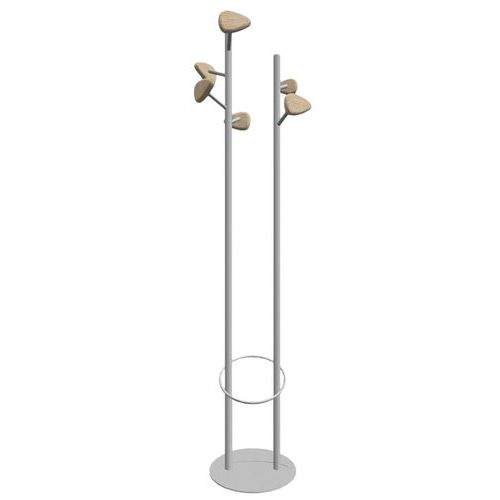 - Base en acier ép 8 mm forme ovale 360x320mm, patères en hêtre, fixées en usine