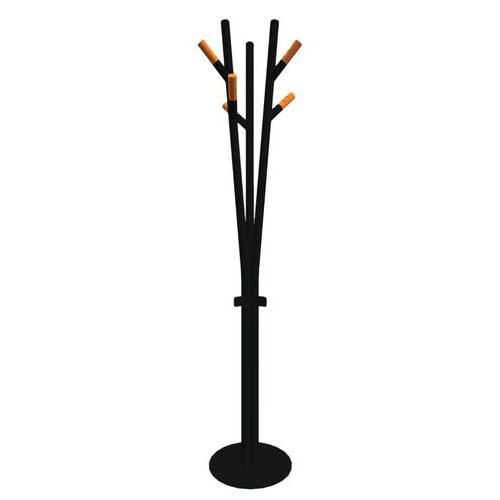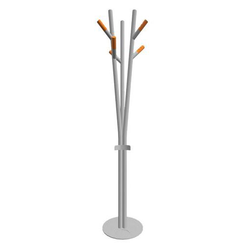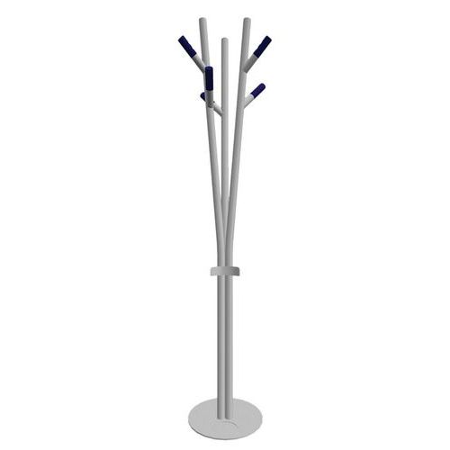 Structure tube en acier Ø 35 mm épaisseur 1.2 mm Base en acier Ø 320 mm épaisseur 8 mm, 6 patères en tube acier Ø 35 mm recouvert d un manchon silicone longueur totale 135 mm coloris blanc, orange, vert, gris ou bleu Embout finition sur tube haut Fixation haute et basse par bouton poussoir avec pince à ressort