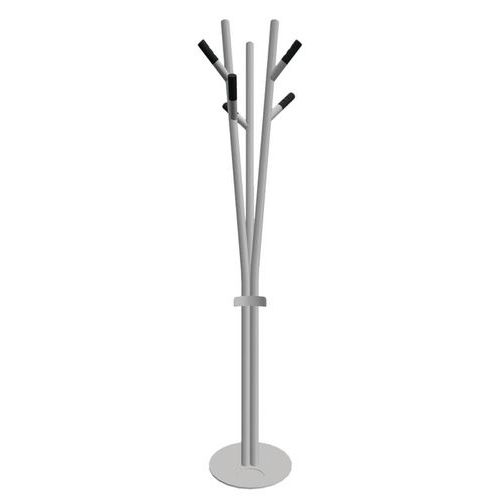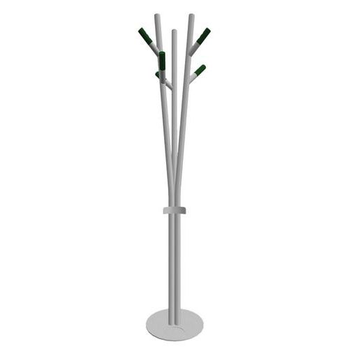 Structure tube en acier Ø 35 mm épaisseur 1.2 mm Base en acier Ø 320 mm épaisseur 8 mm, 6 patères en tube acier Ø 35 mm recouvert d un manchon silicone longueur totale 135 mm coloris blanc, orange, vert, gris ou bleu Embout finition sur tube haut Fixation haute et basse par bouton poussoir avec pince à ressort Garantie client : 5 ans