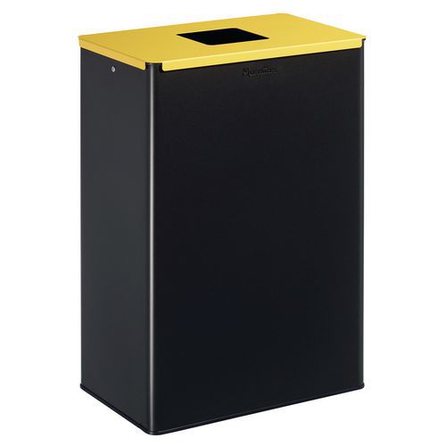 Facilite le tri sélectif grâce au couleur et à l'ouverture calibrée Couvercle amovible Simplicité de mise en place et retrait du sac Acier poudré anti-UV Ouverture calibrée et identification selon le type de déchets Kit étriers intégré pour maintien du sac Installation préconisée dans un espace couvert