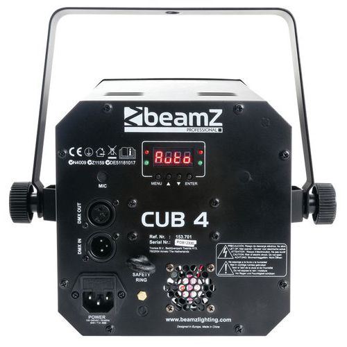 Le Cub4 combine deux effets en un seul appareil. Le moonflower, placé au centre, dispose de 64 LEDs RGBAW, le Quad Derby, sur les côtés, reçoit la puissance de deux LEDs 10 W 4-en-1 RGBW. Les deux effets sont contrôlables séparément. La fonction master / slave permet une utilisation idéal pour des DJs mobiles et des animations. Pour les utilisateurs plus expérimentés, un mode DMX 4 ou 10 canaux est disponible pour gérer totalement les effets.