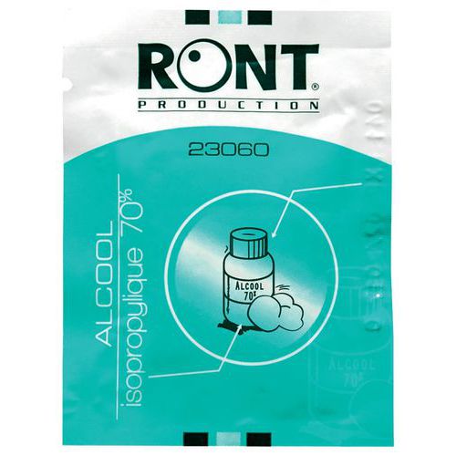 | Intitulé du produit | 100 Lingettes désinfectantes prêtes à l'emploi d'alcool isopropylique-Ront, Modèle: Sachet individuel |