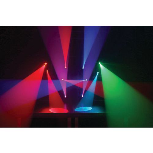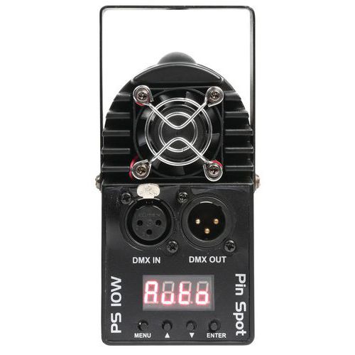 Le PS10W est un spot avec une LED 10 W 4-en-1. La LED est formée des couleurs rouge, vert, bleu et blanc. Grâce à son faisceau très étroit, il est parfait pour une utilisation avec des boules à facettes, donnant l'impression d'un effet galactique lorsque le faisceau se reflète sur les facettes. Il peut être géré via DMX ou en mode Stand-alone en mode auto ou géré par le son. Il peut changer les couleurs ou être réglé sur une couleur donnée. Après l'arrêt, il conserve le dernier réglage utilisé.