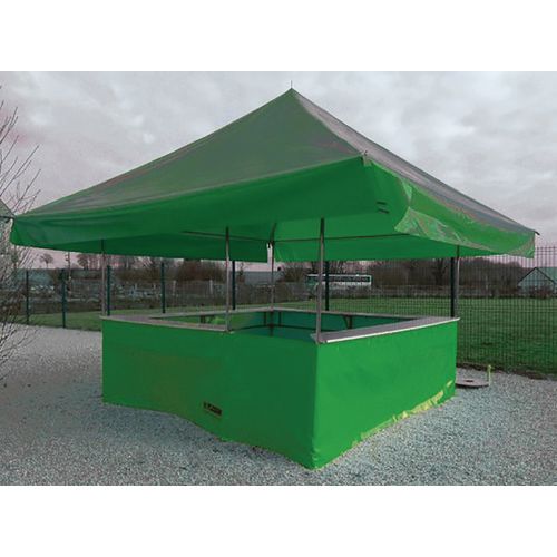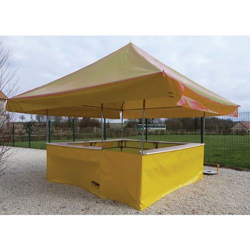 - Entoilage (toiture et jupe) polyester enduite PVC double face 650 g/m² classé au feu M2 verni anti-salissure.