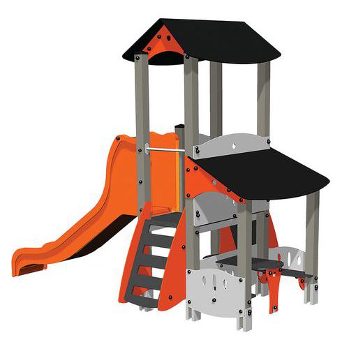 Struc grande tour et grande cabane Pilou alu, Âge recommandé: 2 - 8 ans, Glissière matériau: Inox
