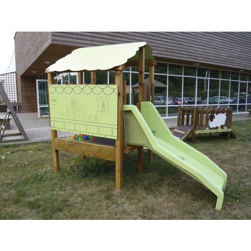- Equipé d’une glissière polyester avec barre de maintien et motifs incrustés(panneaux en stratifié compact HPL, imputrescible sans entretien).