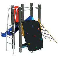 - Composé d'une tourelle, une échelle oblique, un mur oblique large, un banc sous tourelle, un filet oblique d'escalade et d'un toboggan.