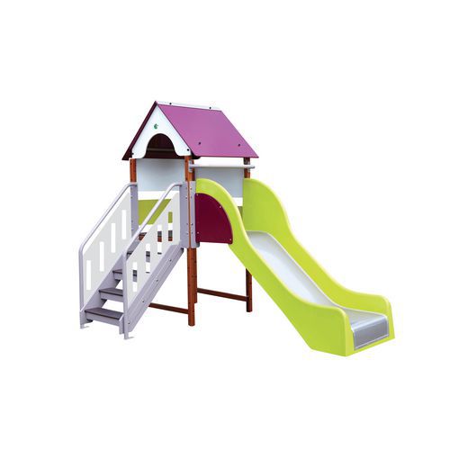 - Composée d’une tour avec toit, un escalier et un toboggan.