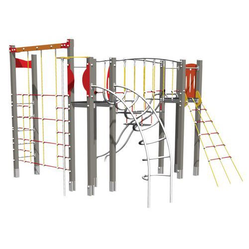 - Composé d'une rampe à glisser, 1 filet oblique, 1 pont suspendu escalier, 1 échelle 1/4 de rond, 1 mât à glisser, 1 filet vertical, 1 échelle verticale.