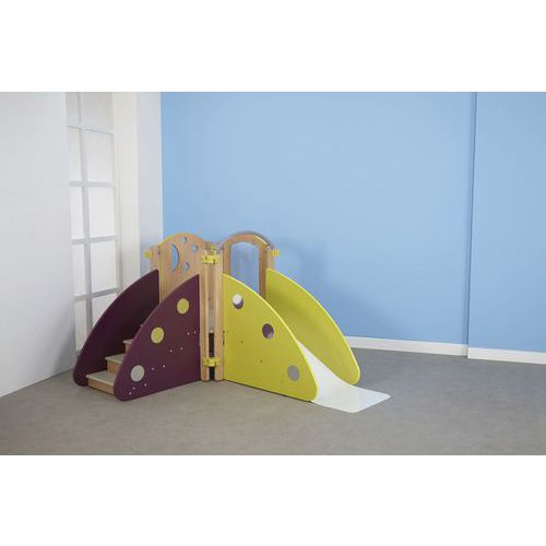 Structure destinée aux enfants à partir de 12 mois. L’escalier est particulièrement adapté aux tout-petits tant en hauteur de marches qu’en largeur des rampes.