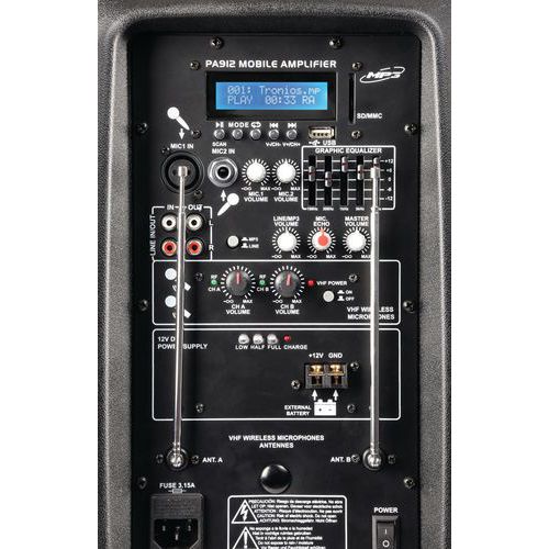 Système amplifié portable SPJ-PA9 12 et 15 2 UHF/USB/MP3 Vonyx