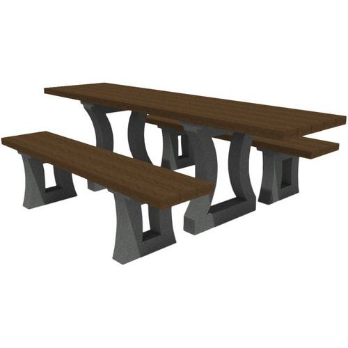 Table Arizona PMR avec 2 banquettes plastique recyclé Espace urbain, Matériau: Polyéthylène Table Arizona PMR avec 2 banquettes plastique recyclé Espace urbain, Matériau: Polyéthylène