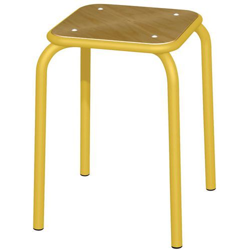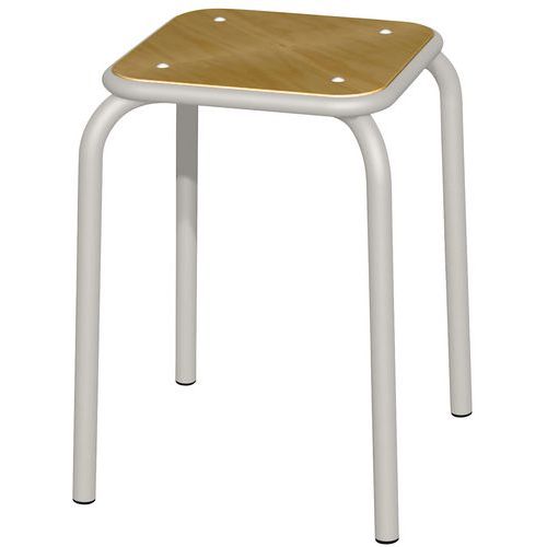Tabouret assise encastrée. Assise en hêtre multiplis, épaisseur 10 mm, verni polyuréthane. Piétement tube Ø 25 mm revêtu époxy.