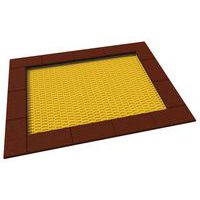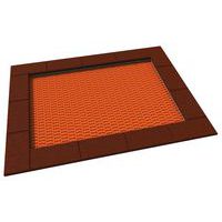 Trampoline ORTA destiné à être utilisé sur des aires de jeux à usage intensif. Collier en caoutchouc EPDM. Structure en caisson métallique. Tapis de saut composé de lamelles Hercules très résistantes d'une largeur d'au moins 37 mm, en forme de V et renforcé par des nervures. Espaces entre les éléments du tapis réduits à seulement 7 mm, pour empêcher les petits objets de tomber dans le trampoline Toile de saut avec une surface antidérapante sous forme de saillies horizontales et circulaires alternées, enfilées sur un câble en acier inoxydable dans une housse souple. Ressorts fixant le tapis, situés autour du périmètre de la structure, reliés à un cordon métallique avec un oeillet renforcé spécial ou une tige métallique reliant les éléments du tapis, ce qui empêche l'abrasion des câbles lors de leur utilisation. Garantie structure inox : 10 ans. Garantie parties métalliques aluminium et polyéthylène : 5 ans. Garantie cordes, clips, connecteurs, revêtements peints : 2 ans. Garantie roulements, ressorts, pièces de fixations pour balançoire : 1 an. Livré démonté. Autres coloris disponibles sur demande