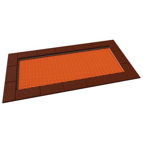Trampoline ORTA destiné à être utilisé sur des aires de jeux à usage intensif. Collier en caoutchouc EPDM. Structure en caisson métallique. Tapis de saut composé de lamelles Hercules très résistantes d'une largeur d'au moins 37 mm, en forme de V et renforcé par des nervures. Espaces entre les éléments du tapis réduits à seulement 7 mm, pour empêcher les petits objets de tomber dans le trampoline Toile de saut avec une surface antidérapante sous forme de saillies horizontales et circulaires alternées, enfilées sur un câble en acier inoxydable dans une housse souple. Ressorts fixant le tapis, situés autour du périmètre de la structure, reliés à un cordon métallique avec un oeillet renforcé spécial ou une tige métallique reliant les éléments du tapis, ce qui empêche l'abrasion des câbles lors de leur utilisation. Garantie structure inox : 10 ans. Garantie parties métalliques aluminium et polyéthylène : 5 ans. Garantie cordes, clips, connecteurs, revêtements peints : 2 ans. Garantie roulements, ressorts, pièces de fixations pour balançoire : 1 an. Livré démonté. Autres coloris disponibles sur demande