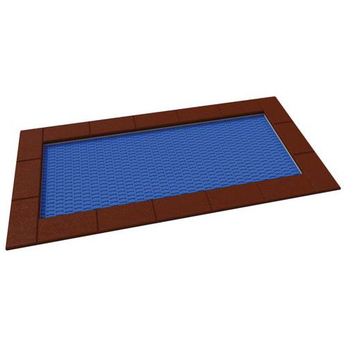 Trampoline ORTA destiné à être utilisé sur des aires de jeux à usage intensif. Collier en caoutchouc EPDM. Structure en caisson métallique. Tapis de saut composé de lamelles Hercules très résistantes d'une largeur d'au moins 37 mm, en forme de V et renforcé par des nervures. Espaces entre les éléments du tapis réduits à seulement 7 mm, pour empêcher les petits objets de tomber dans le trampoline Toile de saut avec une surface antidérapante sous forme de saillies horizontales et circulaires alternées, enfilées sur un câble en acier inoxydable dans une housse souple. Ressorts fixant le tapis, situés autour du périmètre de la structure, reliés à un cordon métallique avec un oeillet renforcé spécial ou une tige métallique reliant les éléments du tapis, ce qui empêche l'abrasion des câbles lors de leur utilisation. Garantie structure inox : 10 ans. Garantie parties métalliques aluminium et polyéthylène : 5 ans. Garantie cordes, clips, connecteurs, revêtements peints : 2 ans. Garantie roulements, ressorts, pièces de fixations pour balançoire : 1 an. Livré démonté. Autres coloris disponibles sur demande