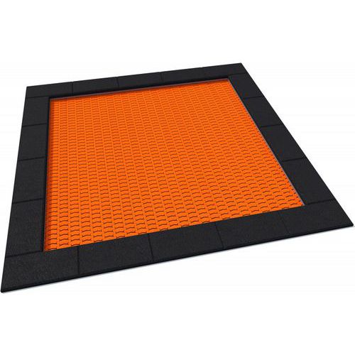 Trampoline PAKO destiné à être utilisé sur des aires de jeux à usage intensif. Collier en caoutchouc EPDM. Structure en caisson métallique. Tapis de saut composé de lamelles Hercules très résistantes d'une largeur d'au moins 37 mm, en forme de V et renforcé par des nervures. Espaces entre les éléments du tapis réduits à seulement 7 mm, pour empêcher les petits objets de tomber dans le trampoline Toile de saut avec une surface antidérapante sous forme de saillies horizontales et circulaires alternées, enfilées sur un câble en acier inoxydable dans une housse souple. Ressorts fixant le tapis, situés autour du périmètre de la structure, reliés à un cordon métallique avec un oeillet renforcé spécial ou une tige métallique reliant les éléments du tapis, ce qui empêche l'abrasion des câbles lors de leur utilisation. Garantie structure inox : 10 ans. Garantie parties métalliques aluminium et polyéthylène : 5 ans. Garantie cordes, clips, connecteurs, revêtements peints : 2 ans. Garantie roulements, ressorts, pièces de fixations pour balançoire : 1 an. Livré démonté. Autres coloris disponibles sur demande
