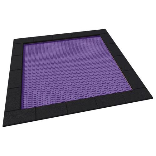 Trampoline PAKO destiné à être utilisé sur des aires de jeux à usage intensif. Collier en caoutchouc EPDM. Structure en caisson métallique. Tapis de saut composé de lamelles Hercules très résistantes d'une largeur d'au moins 37 mm, en forme de V et renforcé par des nervures. Espaces entre les éléments du tapis réduits à seulement 7 mm, pour empêcher les petits objets de tomber dans le trampoline Toile de saut avec une surface antidérapante sous forme de saillies horizontales et circulaires alternées, enfilées sur un câble en acier inoxydable dans une housse souple. Ressorts fixant le tapis, situés autour du périmètre de la structure, reliés à un cordon métallique avec un oeillet renforcé spécial ou une tige métallique reliant les éléments du tapis, ce qui empêche l'abrasion des câbles lors de leur utilisation. Garantie structure inox : 10 ans. Garantie parties métalliques aluminium et polyéthylène : 5 ans. Garantie cordes, clips, connecteurs, revêtements peints : 2 ans. Garantie roulements, ressorts, pièces de fixations pour balançoire : 1 an. Livré démonté. Autres coloris disponibles sur demande