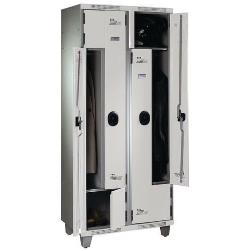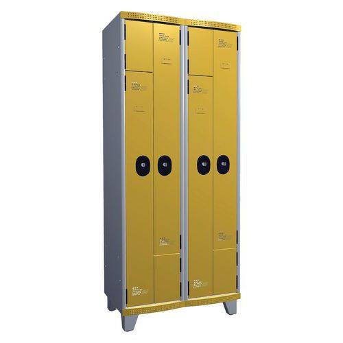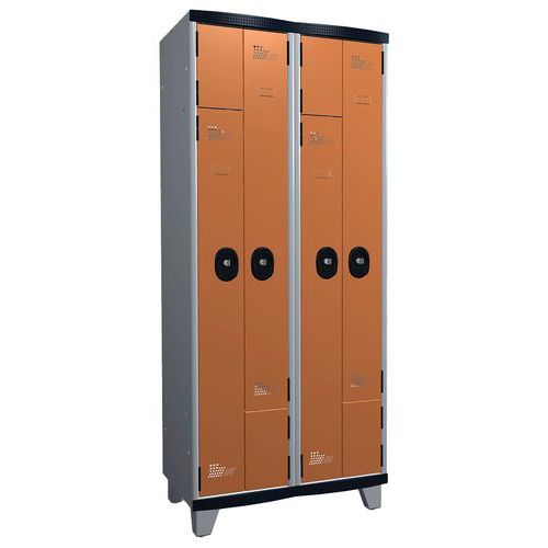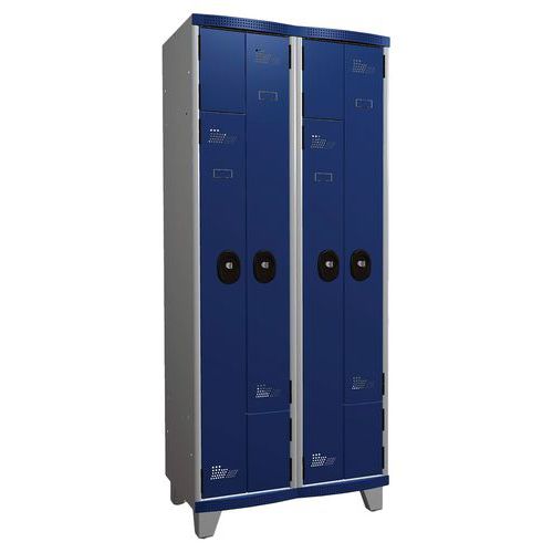 Vestiaire portes en L à clé sur pieds largeur 400 mm 2 colonnes Acial Vestiaire portes en L à clé sur pieds largeur 400 mm 2 colonnes Acial