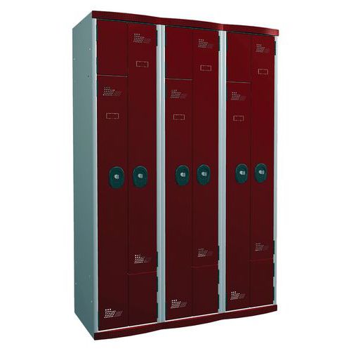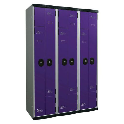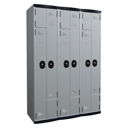 Vestiaire portes en L à clé sur socle largeur 400 mm 3 colonnes Acial Vestiaire portes en L à clé sur socle largeur 400 mm 3 colonnes Acial