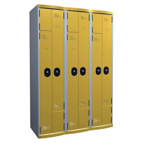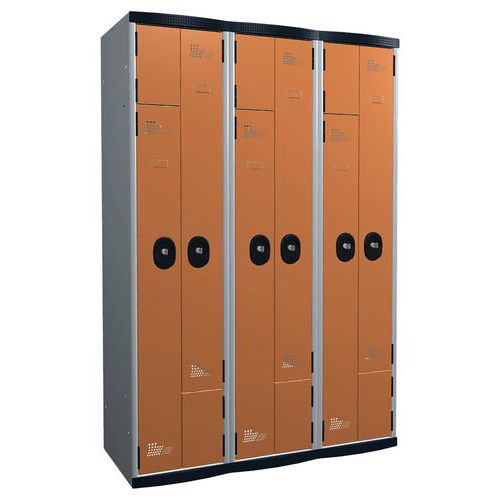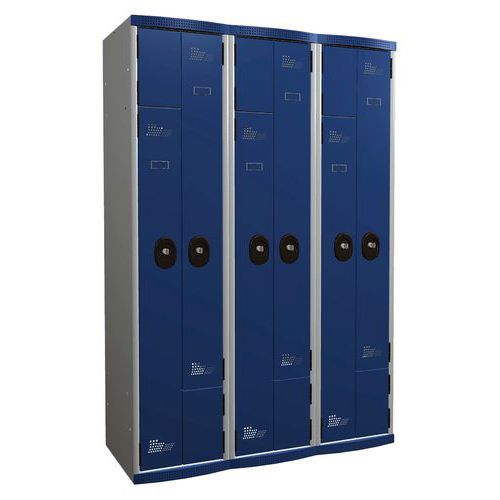 Vestiaire portes en L à clé sur socle largeur 400 mm 3 colonnes Acial