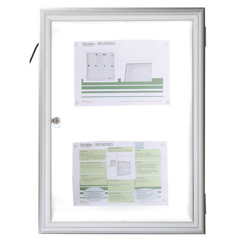 Vitrine extérieure Reverso LED Planorga, Capacité (nb de feuilles A4): 16, Fond matériau: Acier