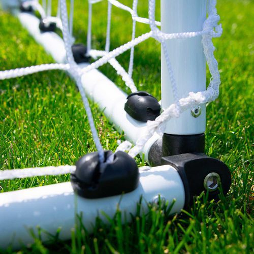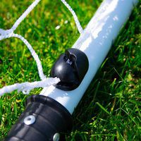 La structure très solide est également rabattable grâce aux supports latéraux qui se replient aisément (clips sur la barre transversale pour retenir les supports latéraux lors du transport du but).