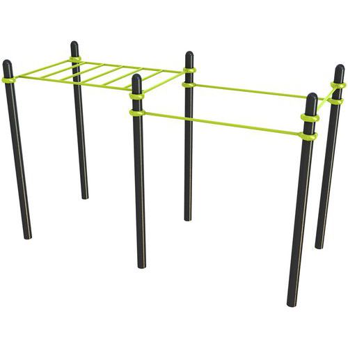 | Intitulé du produit | Module Dpi 03 street workout, Matériau: Acier, Hauteur de chute: 1.20 m, Longueur: 3.65 m, Hauteur: 2550 mm |