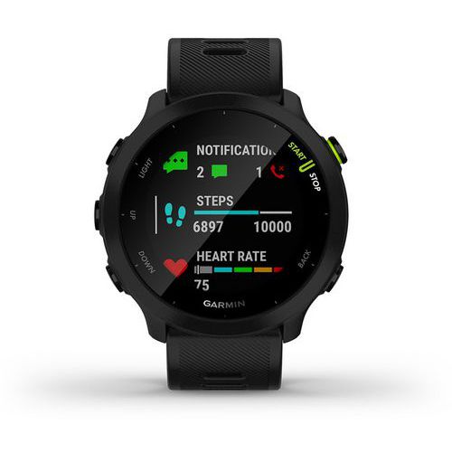 - Cardio-fréquencemètre GARMIN Forerunner 55 avec cardio au poignet et fonction GPS.