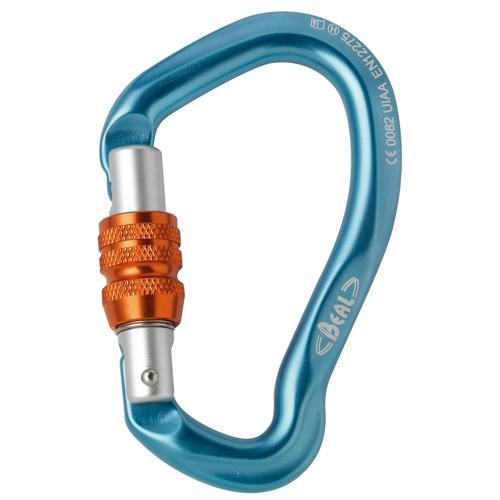 Mousqueton de sécurité asymétrique à vis pour longe. Sa conception et sa forme le rendent particulièrement maniable à l extrémité d une longe pour se vacher au relais. Dans le cas où vous utilisez un appareil d assurage, ce mousqueton asymétrique est idéal pour que l appareil soit toujours bien guidé sur l extrémité du mousqueton.