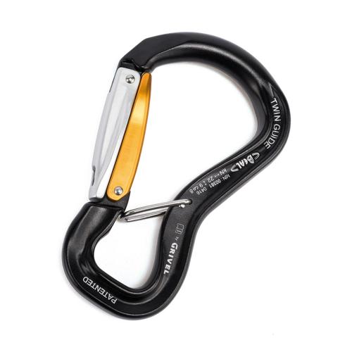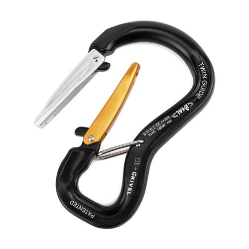 Mousqueton Twin Guide Captive BEAL, le top du top en matière de sécurité. Capture sur le baudrier et système d'ouverture double breveté.