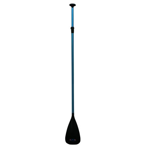 Une pagaie vario réglable (170/210 cm), manche aluminium anodisé noir, insubmersible, prise en main diamètre 30 mm.