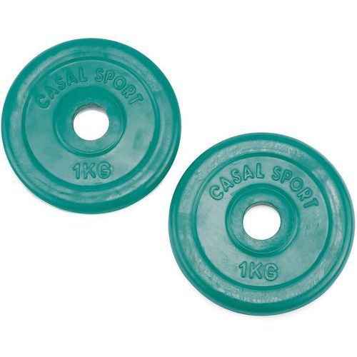 - 2 disques de poids de musculation avec revêtement caoutchouc coloré.