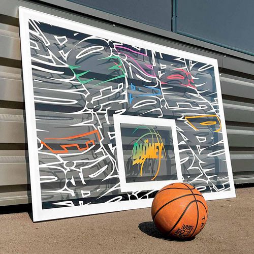 Panneau de basket représente dont le design est “un pont entre le sport, l’art urbain, et l’engagement social