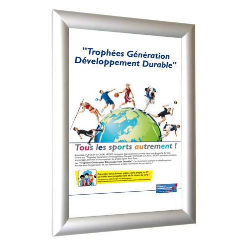Communiquez en toute rapidité avec ce cadre d'affichage. Fond en plastique avec profilé en aluminium se rabattant pour maintenir votre feuille.