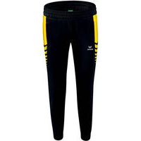 Pantalon de sport femme Erima, de couleur noir/jaune, conçu pour l'entraînement en intérieur et en extérieur.