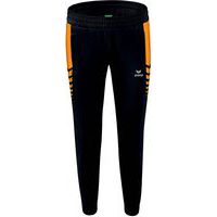 Pantalon de sport femme Erima, de couleur noir/orange, conçu pour l'entraînement en intérieur et en extérieur.